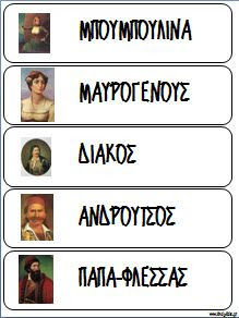 Από τις εικόνες και την αφήγηση στοχεύουμε τα παιδιά να μάθουν ή έστω να θυμούνται τις εξής λέξεις κλειδιά για την επανάσταση του 1821: